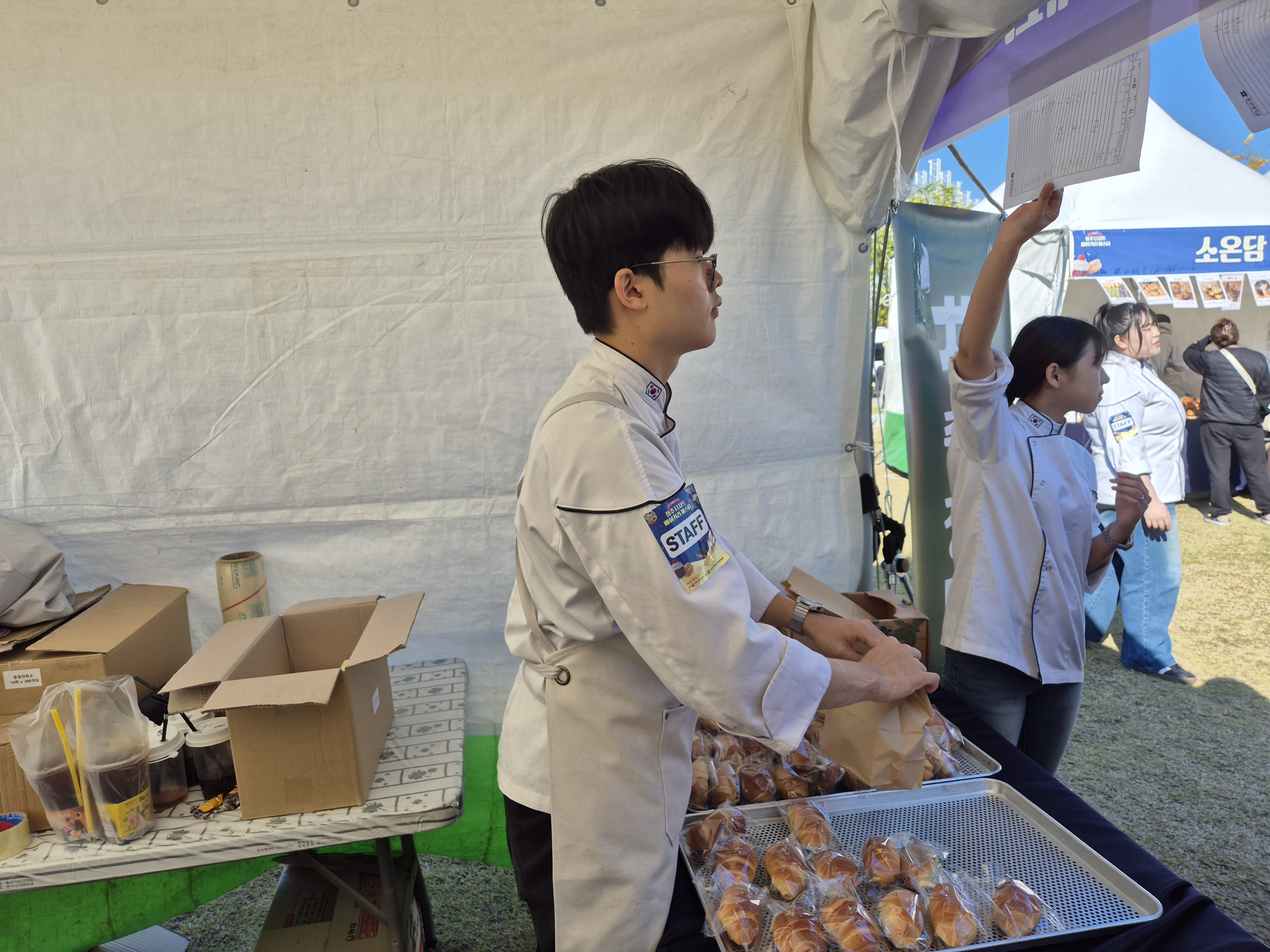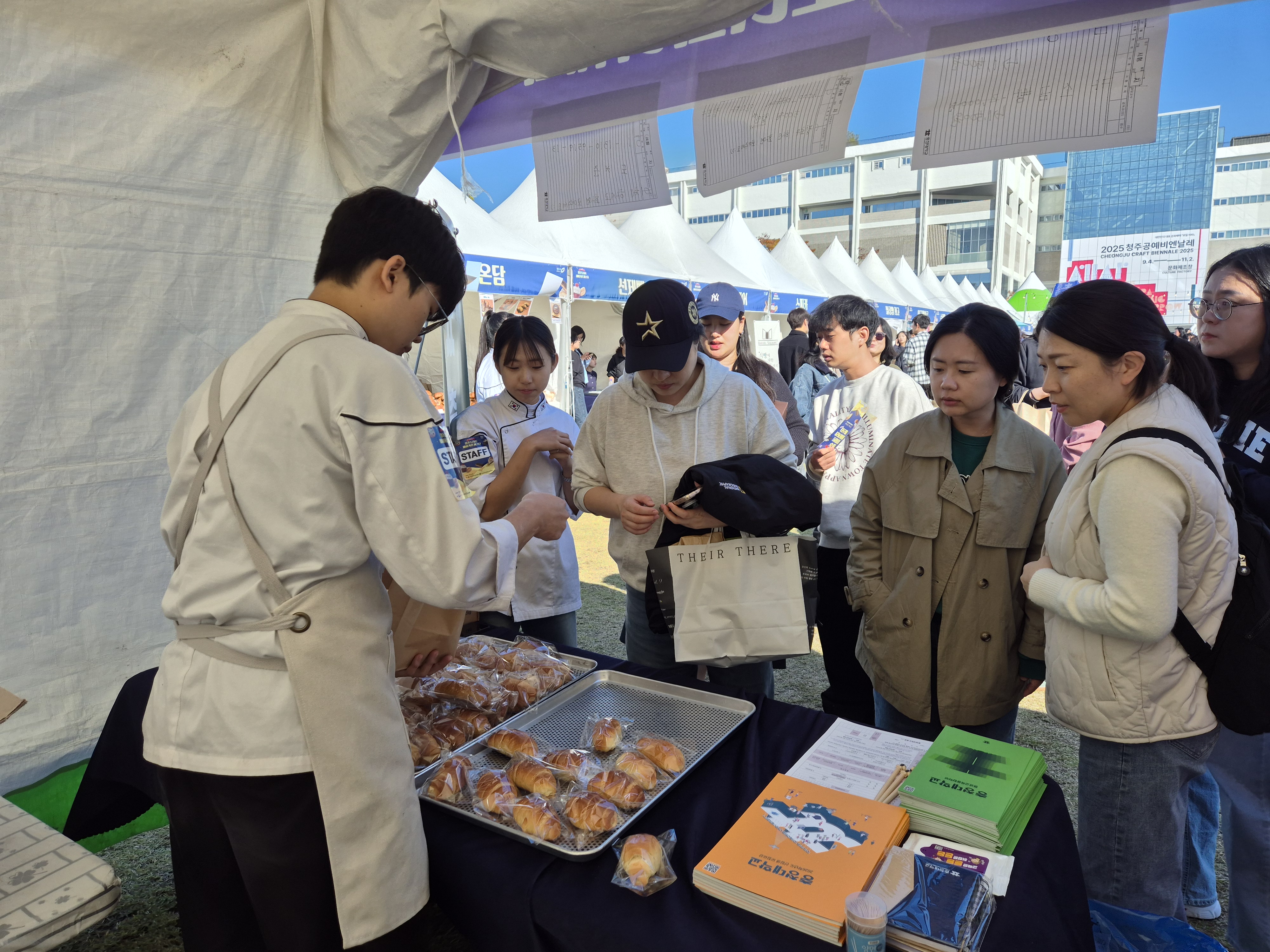 지난 11월 1일(토)과 2일(일), 충청대학교 호텔조리파티과 학생들이 청주디저트페스티벌에 참가하여 직접 제작한 소금빵을 판매하며 완판을 기록했습니다. 학생들은 제빵 실무능력을 발휘하여 높은 품질의 제품을 선보였으며, 방문객들과의 소통을 통해 즐겁고 뜻깊은 경험을 쌓았습니다. 이번 활동은 현장 실습과 판매 경험을 동시에 얻을 수 있는 소중한 기회였으며, 학생들은 “학교에서 배운 기술을 직접 활용해 좋은 추억을 만들었다”고 전했습니다. 호텔조리파티과는 앞으로도 지역사회와 함께하는 다양한 실습 활동을 통해 학생들의 전문성과 실무역량을 강화해 나갈 예정입니다. (소금빵 판매 부스 사진, 학생활동 사진 첨부) |